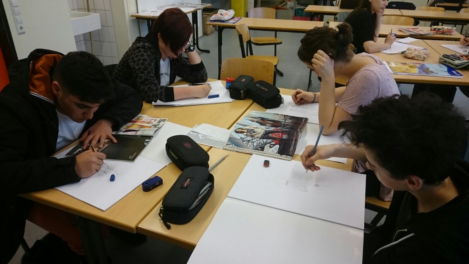 Bei der Zeichnenstation zeichneten die Schüler sogenannte Figurinen mit Kleid oder Bluse bis hin zu einem ganzem Casual-Outfit.