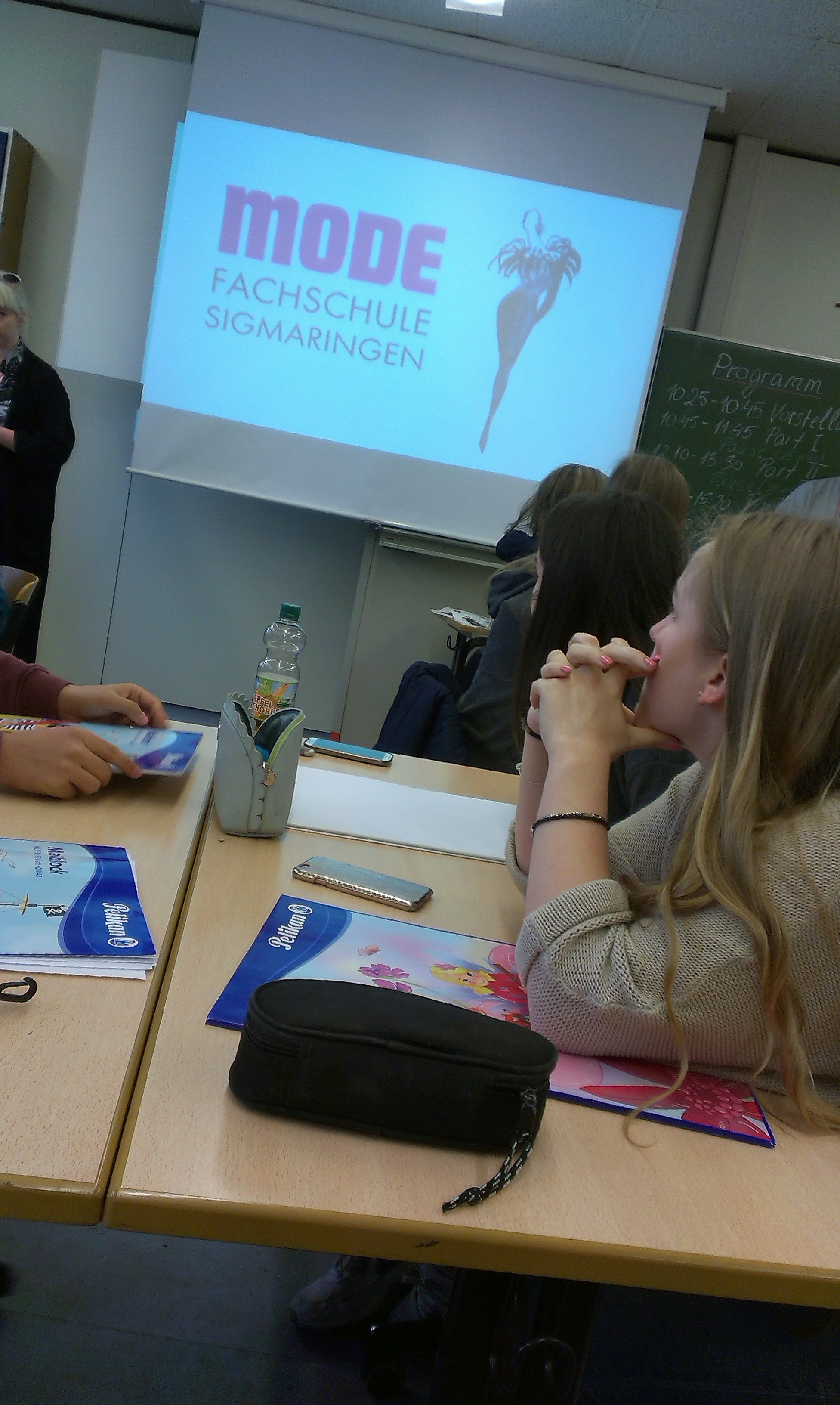 Am 18.04.2016 besuchten vier Studenten der Modefachschule aus Sigmaringen (BadenWürttemberg) unter dem Themenaspekt „Falten“ die Oberschule Lerchenstraße. Sie besuchten unsere Schule, um Schüler für ein Studium oder Stipendium an ihrer Hochschule zu interessieren. Auf einer Powerpoint verfolgten Schüler des Leistungskurses der ersten Qualifikationsphase, Schüler der zehnten Klassen (angehendes Kunstprofil), sowie Schüler des Gymnasiums Vegesack wie die Studenten die Innenausstattung ihrer Schule präsentierten und von dieser erzählten.