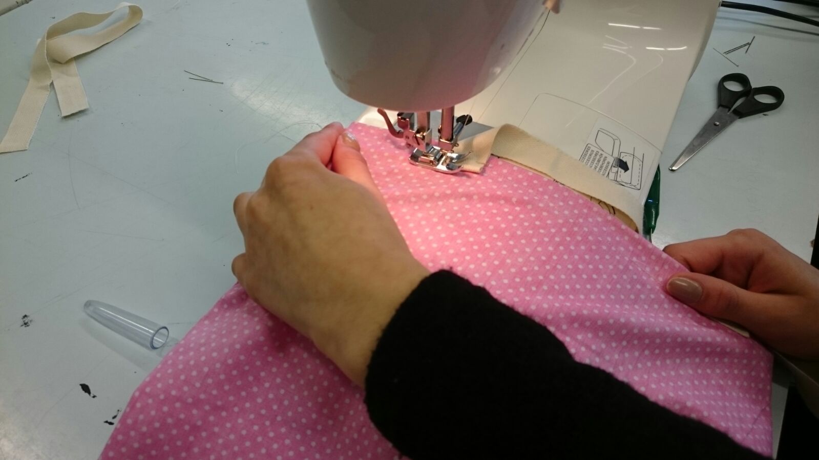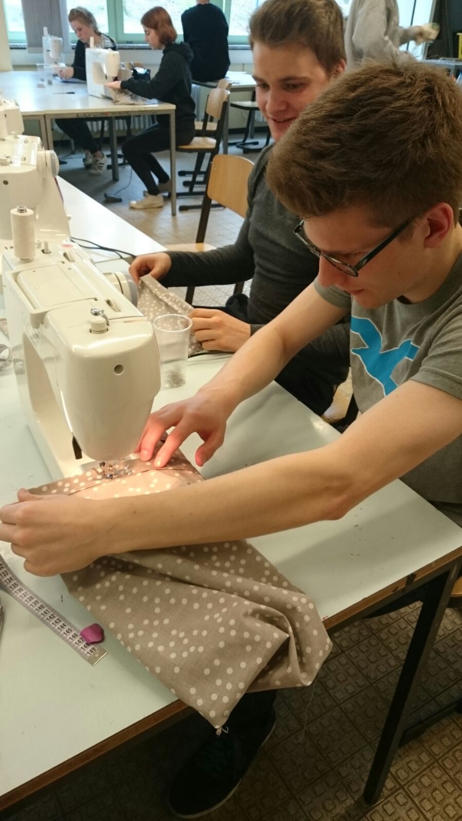 Bei der Nähstation stellten die Schüler eigenständig Jutebeutel her. Dabei dürften die SchülerInnnen zwischen vier verschiedenen Mustern wählen.