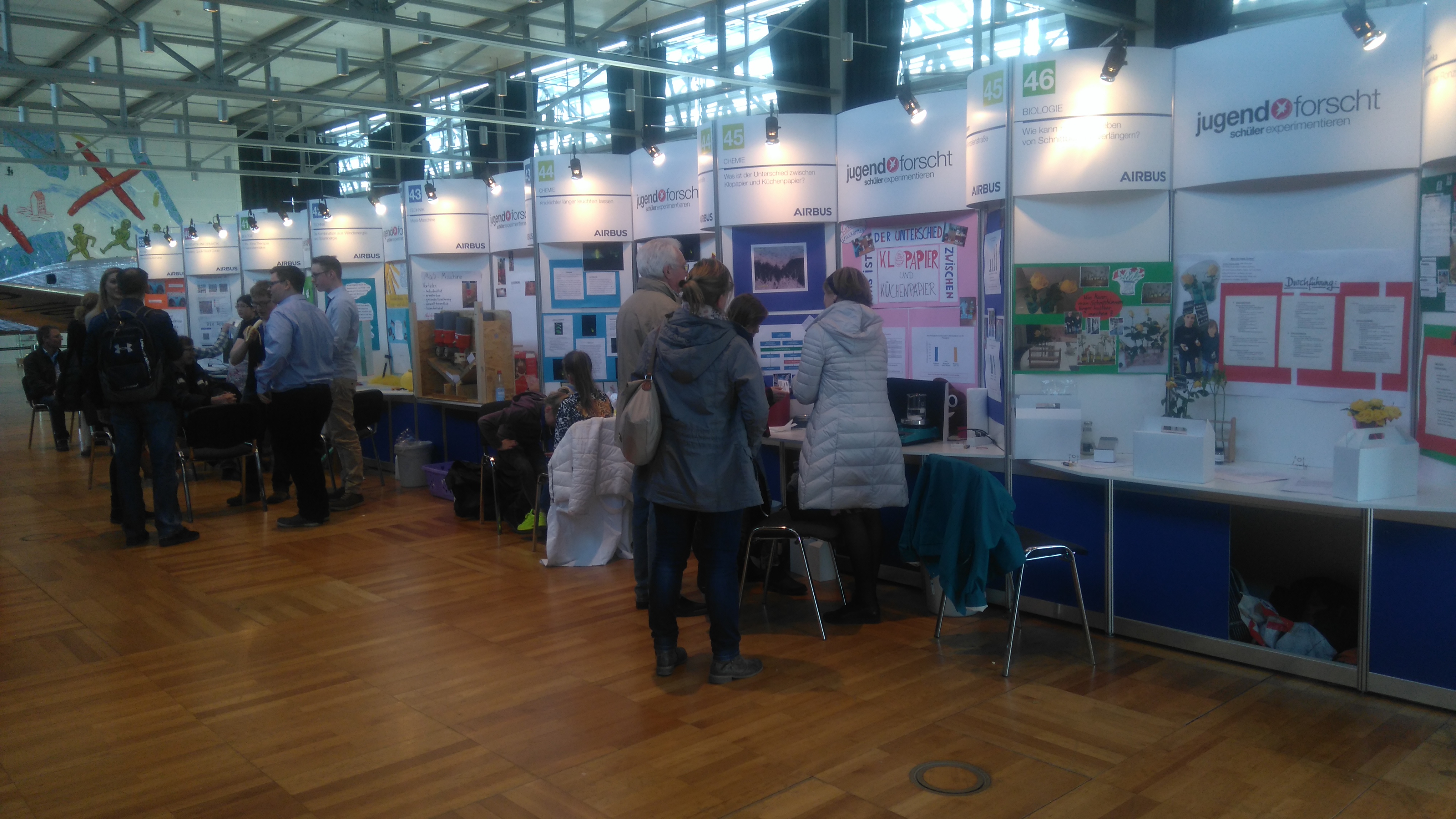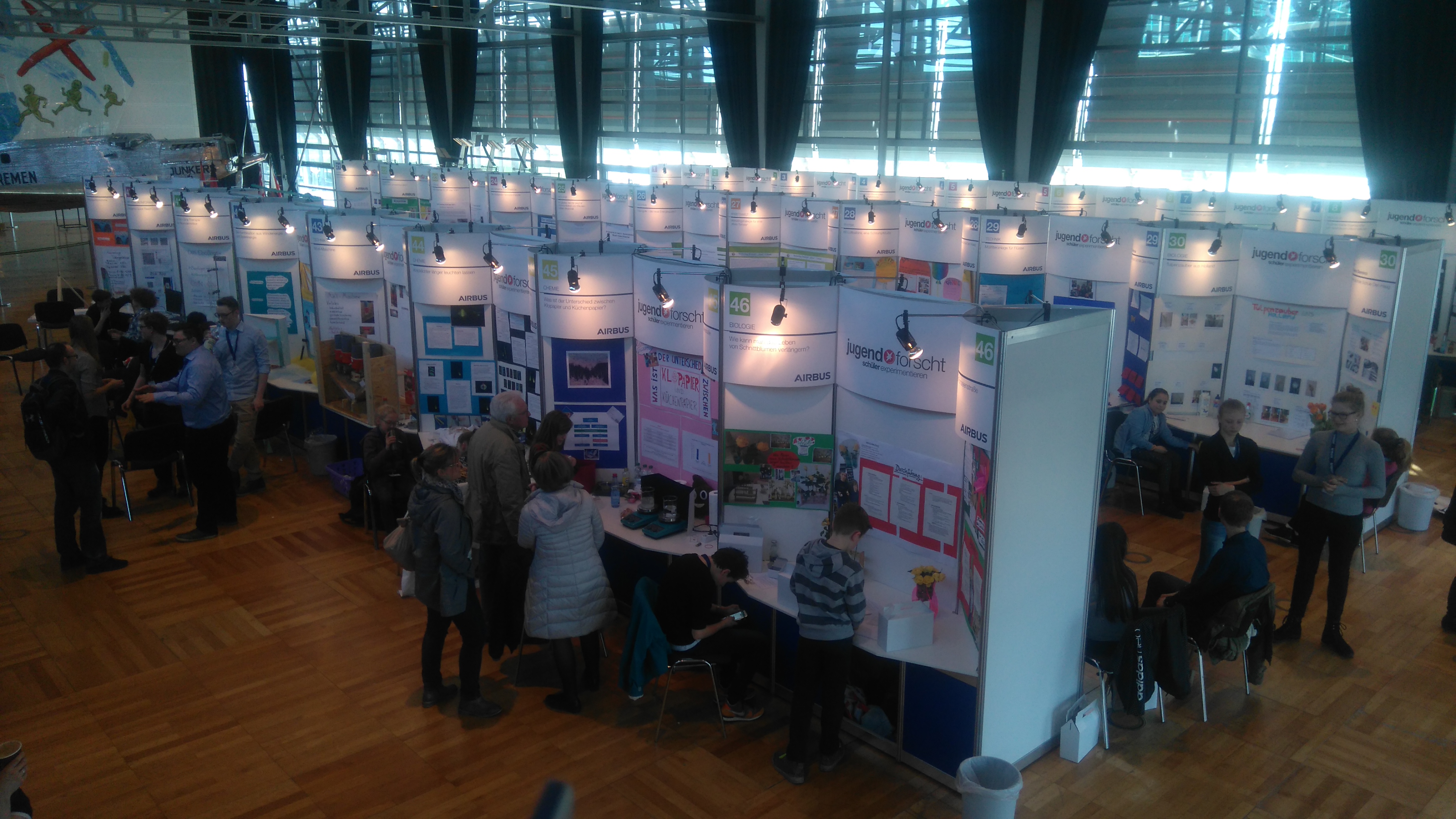 Es war schon ein bisschen anders als ich es von meinen eigenen Teilnahmen an Jugend forscht aus früheren Jahren kannte. Während die vielen Stunden, die wir noch in einem sporadisch geheizten Zelt auf dem Airbus-Gelände verbracht hatten, wohl so schnell nicht aus meinem Gehirn verschwinden werden, stand ich nun in einem großen, hellen und vor allem gut gewärmten Raum.