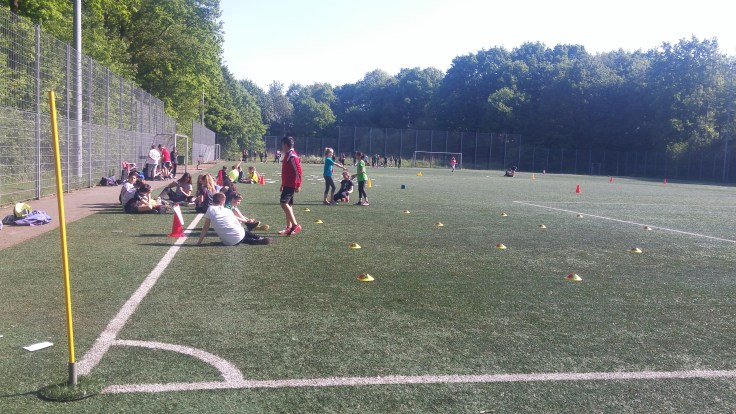 Sportlicher Aktionstag an der Lerche. Lehrer zwangen Schüler dazu, Sport in der Sonne zu machen. Und die Schüler hatten sogar Spaß daran.
