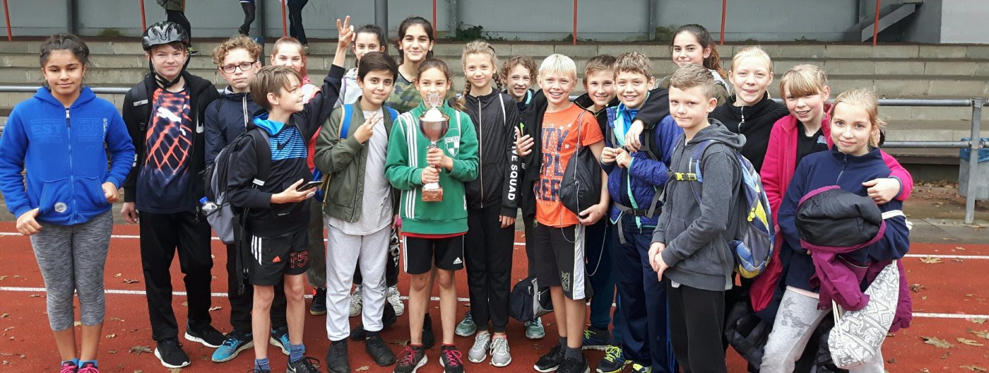 Heute haben die Sportprofile der Lerchenstraße im Wettkampf gegen die Helsinkistraße einen knappen Sieg errungen und den Pokal wieder an die Lerchenstraße geholt. Im letzten Schuljahr hatte noch die Helsinkistraße triumphiert. Ohne Regen, aber mit feuchtem Boden war der Wettkampf... weiterlesen →