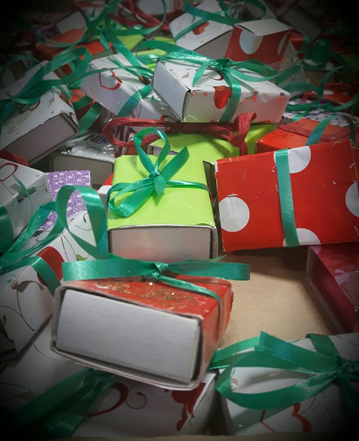 Fleißige Nikoläuse aus dem Wahlpflichtkurs „Kreatives Arbeiten“ haben über einhundert Mini-Geschenke gebastelt und am 6.12. am Standort Borchshöhe verteilt. Hierzu wurden Streichholzschachteln dekoriert und eingepackt und mit Bonbons gefüllt. Ganz ohne Hintergedanken, sondern einfach nur, um vielen Menschen eine ganz kleine Freude zu machen.