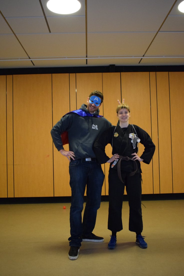 Und so vielfältig und einfallsreich die Kostüme bis zu diesem Zeitpunkt auch gewesen sind, hat mir der Donnerstag doch am meisten Spaß bereitet. Wir haben unsere persönlichen Helden, Serien- und Filmcharaktere aufleben lassen und mit ihnen das Kind in uns. Ich erinnere mich genau, wie ich noch immer jede Strophe von „Ich bin wie du“ aus einem der älteren Barbiefilme mitsingen konnte, wie nostalgisch wir alle beim Anblick von Kim Possible wurden, wie viel gelacht wurde, als Philipp als Peach verkleidet auf der Bühne vor verschiedenen Super-Mario- und Luigi-Imitationen geflüchtet ist und wie ich das Grinsen kaum aus dem Gesicht kriegen konnte, als vier Pippi Langstrumpfs frech für die Kamera posiert haben. Unvergessen selbstverständlich auch die sehr unterhaltsame Kampfeinlage zwischen Herrn Dauber und Frau Redmann!