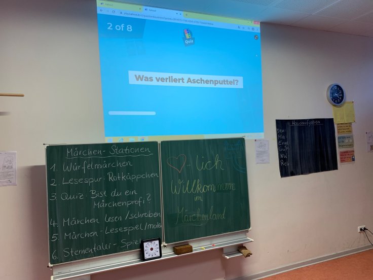 Da wir uns schon den Russisch-Raum angeschaut hatten, gingen wir dann noch in den Französisch-Kurs. Wenig später erwartete uns auch schon das letzte Angebot: das Märchenquiz im Deutsch Raum.