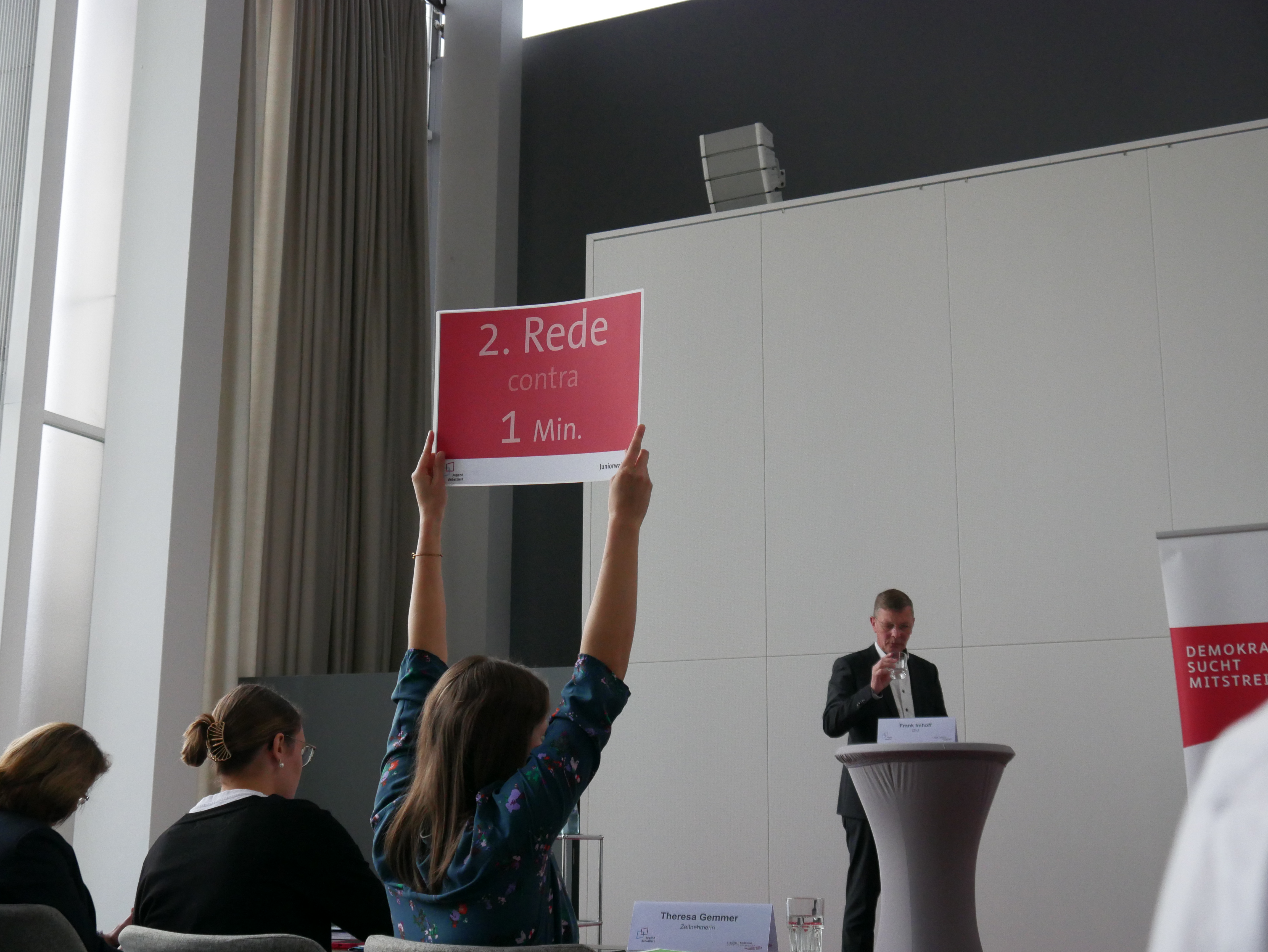 Am 14. Mai ist es wieder soweit, die 21. Bürgerschaftswahl findet in Bremen erneut statt. Diese Wahlen geschehen alle vier Jahre und das Besondere an ihnen ist, dass die Wahlmündigkeit bereits ab 16 Jahren beginnt. Dies ist sonst nicht üblich, da für die meisten Wahlen, wie z.B die Bundestagswahl, ein Wahlalter ab 18 Jahren gilt. Da diese Wahlgemeinschaft mehr Jugendliche beinhaltet, sind die Kandidatinnen der antretenden Parteien besonders engagiert, die Jugend politisch und für ihre jeweiligen Parteien zu begeistern. Aus diesem Grund wurde der Politik-Leistungskurs der 12. Klasse, zusammen mit ihrem Profillehrer Herrn Savic, am 3.5.23 in die Bürgerschaft eingeladen. Hierbei waren sie eine von mehreren bremischen Schulen, die im Publikum saßen und den Politikerinnen dabei zuhörten, wie sie jeweils über ein Thema mit einem/einer Jugendlichen debattierten. Die erste Debatte begann um 10.50 Uhr und endete ca. 12 Minuten später. Hierbei debattierte Frank Imhoff von der CDU auf der Pro-Seite und Helene Richter vom Alexander von Humboldt Gymnasium auf der Contra-Seite. Die Leitfrage war „Soll in der Schule ab Klasse 3 benotet werden?“. Nach der spannenden Debatte war das Publikum gefragt und es durfte entscheiden, ob es sich selbst auf der Pro- oder Contra-Seite positioniere. Hierbei musste man entweder zuerst die grüne Karte für pro, oder danach die rote für contra hochheben. Anschließend hielt jeder/jede Politikerin eine Schlussrede, in der er/sie sagen sollte, warum er/sie gewählt werden soll. In der nächsten Runde ging das Thema darum, ob sich alle Unternehmen in Bremen an den Kosten der allgemeinen Berufsausbildung beteiligten sollten. Diese Runde übernahm Andreas Bovenschulte von der führenden Partei, der SPD, auf der Pro-Seite, er debattierte gegen Mariam Laayachi von der Alexander von Humboldt-Schule. In der Mitte der Debattierveranstaltung waren Maike Schaefer vom Bündnis 90 / Die Grünen auf der Pro-Seite gegen Torge Harms vom Gymnasium an der Hamburger Straße auf der Contra-Seite vertreten. In ihrem Thema ging es darum, ob ein Tempo 30-Limit flächendeckend eingeführt werden sollte. In der vierten Runde war Kristina Vogt von der Partei Die Linke mit ihren Pro-Argumenten für das Thema „Soll in Bremen die 30-Stunden-Woche eingeführt werden?“ dran. Hierbei trat sie den Contra-Argumenten der Schülerin Katharina Ahrens von der St. Johannis-Schule entgegen. Um 12:10 Uhr begann die abschließende Debatte, diese wurde auf der dafür sprechenden Seite von Thore Schäck von der FDP geführt und auf der dagegen sprechenden Seite von Alina Reusbich vom Alexander Humboldt-Gymnasium. Zum Schluss jeder Debattier-Runde war es zwei Personen möglich, Fragen an die Abgeordneten zu stellen. Diese ermutigten die Jugendlichen auch im Nachhinein auf Socialmedia, sie zu kontaktieren und Fragen zu stellen. Dies gilt nicht nur für Schülerinnen, die anwesend waren, sondern für alle, die etwas fragen oder sagen wollen.