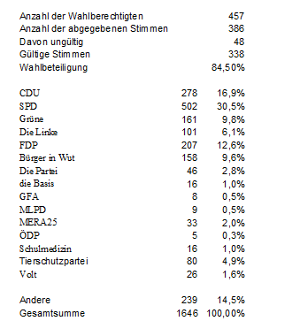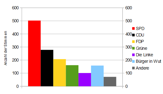 Es folgen die Wahlergebnisse der Juniorwahl, der Oberschule an der Lerchenstraße, für die Wahl der Bremer Bürgerschaft am 14. Mai.