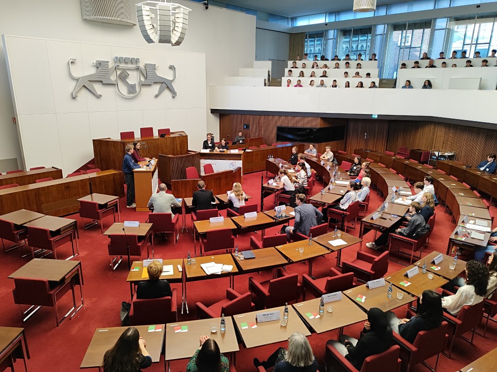 Maya Schulz musste in der Finaldebatte, die in der Bremischen Bürgerschaft durchgeführt wurde, über die Frage, ob es am Bremer Hauptbahnhof Sicherheitskontrollen wie am Flughafen geben soll, debattieren. Dabei wurde ihr die Pro-Seite zugewiesen. Den Teilnehmer:innen wird in den Debatten eine feste Position zur Debattenfrage zugewiesen, die, wie in dem Fall von Maya, von der persönlichen Meinung abweichen kann. Während der 24 minütigen Debatte hat sie es trotzdem geschafft, die Jury durch ihre Argumente, ihre Gesprächsführung und ihr selbstbewusstes Auftreten zu überzeugen.