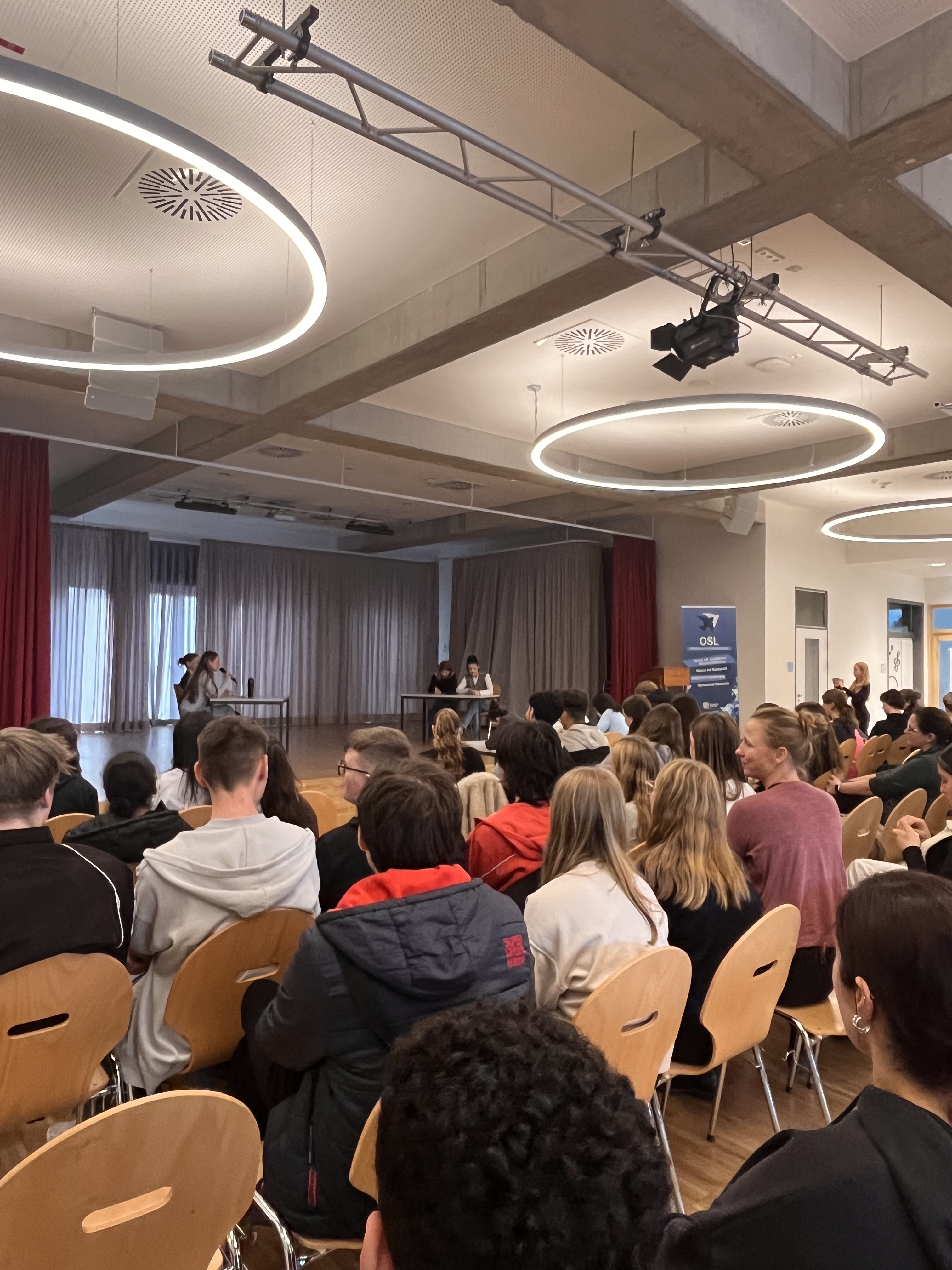 Die Finaldebatten für die Sek. I und die Sek. II fanden erstmals in der Aula unseres neuen Schulgebäudes statt. Vor allem beim Finale der Sek. I waren auch nahezu alle Plätze in der Aula belegt, so dass die Debatte einen würdigen Rahmen hatte.